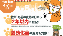 住所等変更登記の申告義務化 公開2025/5/25 追記2026/3/6 令和6年4月1日から、不動産の相続登記の申請が義務化されました。 それに伴い今まで任意であった住所等変更登記の申告も今後は義務に変更となります。 いつからかといいますと、 2…