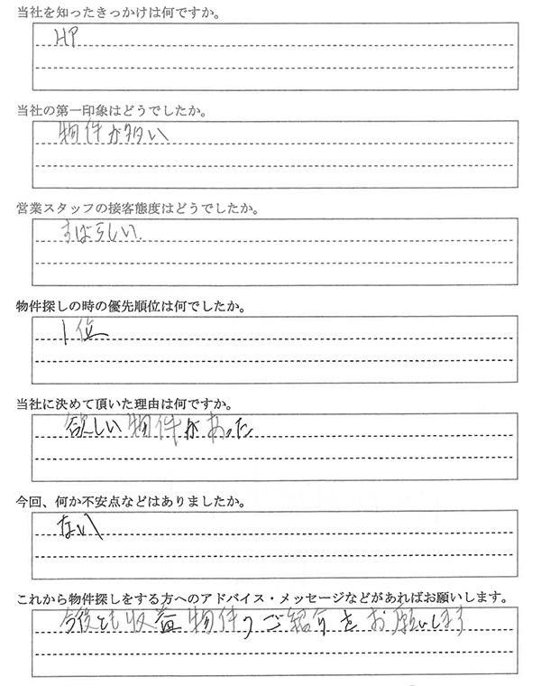 今後とも収益物件のご紹介をお願いします
