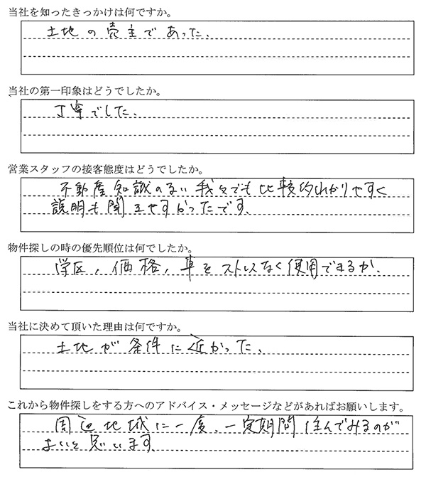 - 不動産知識のない我々でも比較的わかりやすく説明も聞きやすかったです